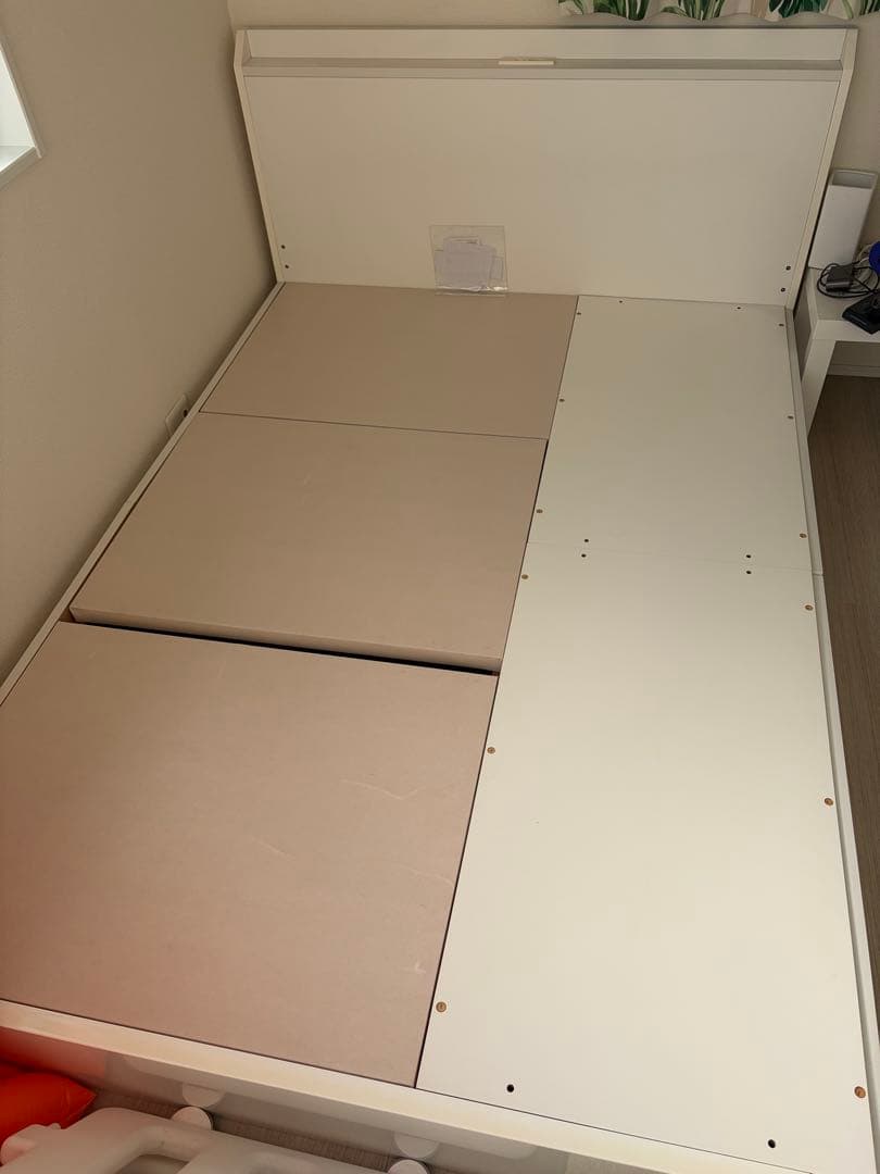 - 収納容量が多く、整理ダンス1台分程度収納でき、部屋の効率利用になります。 2cmのマットレス購入しましたので、マットレスの上面がどうしても高くなってしまいます。 ベットから落ちることを想像すると少し怖いです。 寝相の悪い方は、NGです。