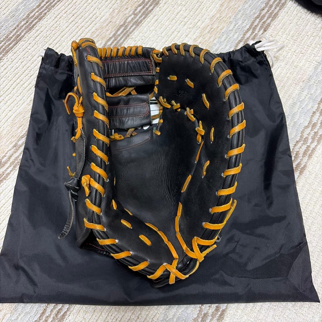 鮮やかなオレンジと黒のレザーグローブ、フィット感抜群。- カラー: オレンジと黒- 素材: レザー- サイズ: 手にフィットするサイズ- 特徴: 鮮やかなオレンジのステッチご覧いただきありがとうございます。久保田スラッガーのオーダーグラブになります。型番は失念してしまいましたが、作り・革質ともにさすがスラッガーと感じられる一品です。使用はキャッチボールを数回行った程度で、実使用はほとんどありません。湯もみ型付け済みのため、届いてすぐにお使いいただける即戦力グラブです。ポケットもしっかりと形成されており、状態は良好です。サイズが合わなかったため、今回出品いたします。中古品となりますので、状態は画像をご確認のうえご判断ください。