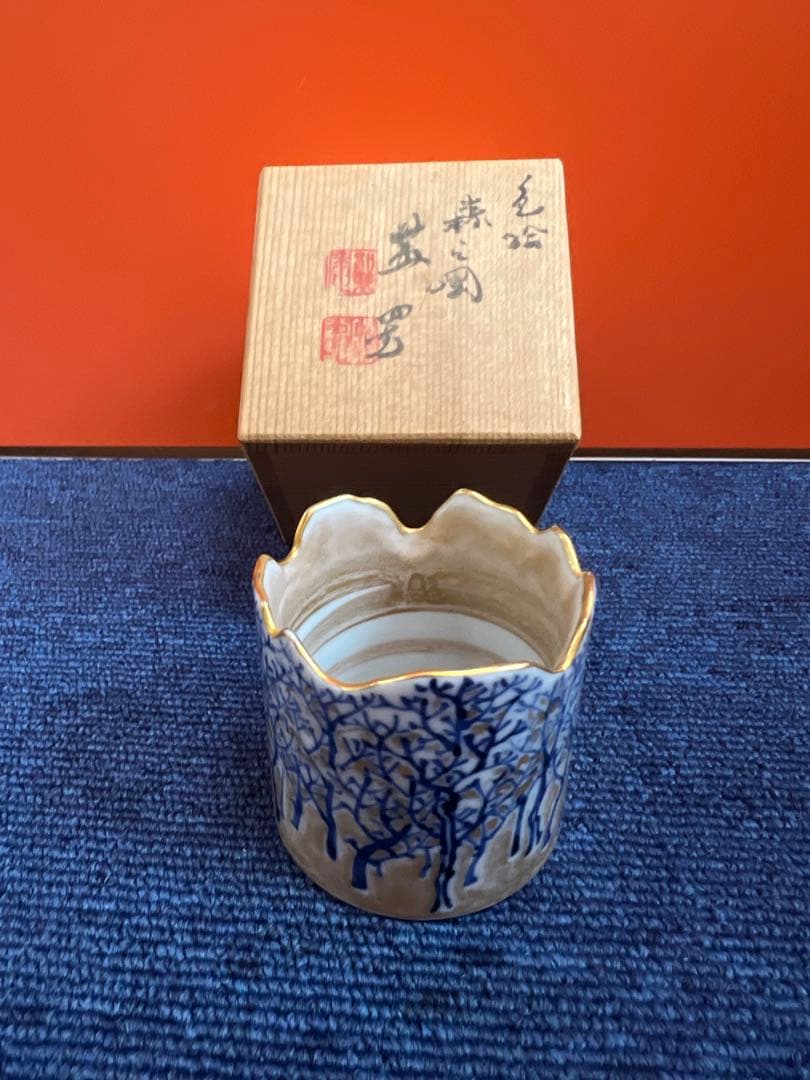 人間国宝 十四代酒井田柿右衛門 濁手 蓼文 瓶 にごしで たでもん びん作者直筆箱書き及び落款入り供箱付十四代酒井田柿右衛門本人作 リーフレット付磁器瓶: 口径3.8㎝幅13.5㎝ 高さ27.5㎝箱: 32 x 17 x 17柿右衛門は日本を代表する歴史と技術を有し、作品一つ一つが価値あるものと評価されている窯元。家族が佐賀県の柿右衛門本店で購入一度も飾らず保管していたお品供箱の桐箱の蓋上部に保管時についたシミ跡があり(写真11)佐賀県の方言で「米のとぎ汁」のことを濁しと言います。柿右衛門の素地の白さは米のとぎ汁のような温味のある白さであることから「濁手」と呼ばれています。(瓶に同封のパンフより)柿右衛門の上絵は野に咲く蓼を写生的に描いていますが、柿右衛門独特の色絵の特徴がよく素地に調和して、気品のある作品になっています。陶磁器作品は主に当主本人が作った作品とお弟子さんなどの窯元で作られた作品の二種類に分かれます。底面に「柿右衛門」という青文字が書かれてあれば窯元作品です。反対に底面に何も書かれておらず且つ、共箱に「濁手」という作者本人直筆の文字があれば本人作となります。永遠の真正性を保証する当主本人の作品は大変貴重で価値のあるものになります。すり替え防止の為、返品は応じかねます。ご了承願います。#有田焼 #柿右衛門#人間国宝 十四代酒井田柿右衛門 #濁手 #蓼文 瓶