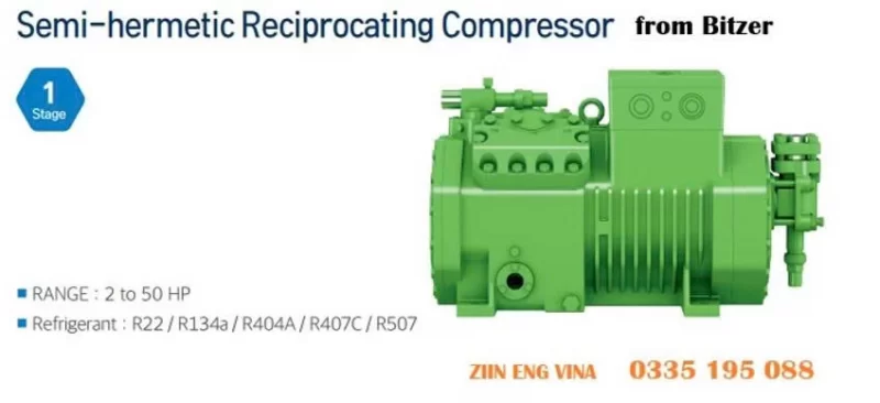 Một vài đặc tính nổi bật của dòng máy nén piston bán kín 1 cấp do Bitzer sản xuất: