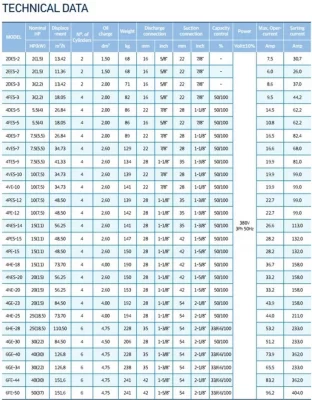 Some models of Bitzer compressors with the technical data for reference: